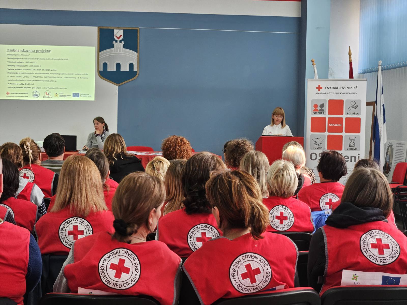 Kao što je poznato, Hrvatski Crveni križ Gradsko društvo Crvenog križa Osijek potpisalo je s Ministarstvom rada, mirovinskog sustava, obitelji i socijalne politike te Hrvatskim zavodom za zapošljavanje, Uredom za financiranje i ugovaranje projekata Europske unije Ugovor za projekt „OSnaženi“ u okviru Poziva „Zaželi-prevencija institucionalizacije“ sufinanciranog iz Europskog socijalnog fonda plus u financijskom razdoblju 2021.-2027. g. Projekt se provodi u trajanju od 36 mjeseci, a ukupna vrijednost projekta iznosi 1.485.000,00 eura.